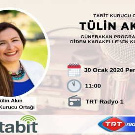 Tabit Kurucu Ortağı Tülin Akın, TRT Radyo 1’de Günebakan Programına konuk oldu. Tabit Kurucu Ortağı Tülin Akın, TRT Radyo 1’de Günebakan Programının Konuğu oldu. Girişimcilik yolculuğu ve Akıllı Tarım Teknolojileri…